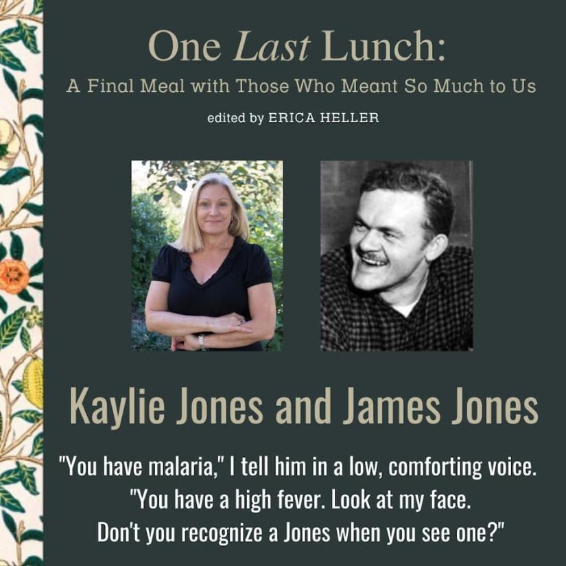 Kaylie Jones’ imagined lunch with her father is included in the collection One Last Lunch: A Final Meal with Those Who Meant So Much to Us. Her essay was written as the malaria-fueled fever dreams of her father, James Jones, who was serving in WWII.